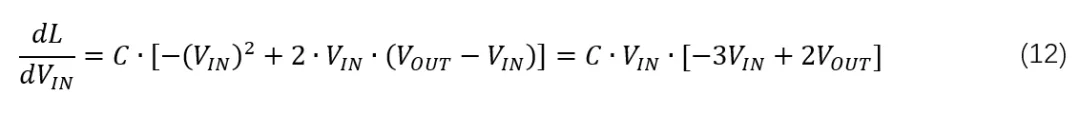 公式(11)的导数,也就是公式(12),是关于 V_IN 的一元二次方程,开口向下的抛物线。在导数等于0的位置,方程取得最大值。