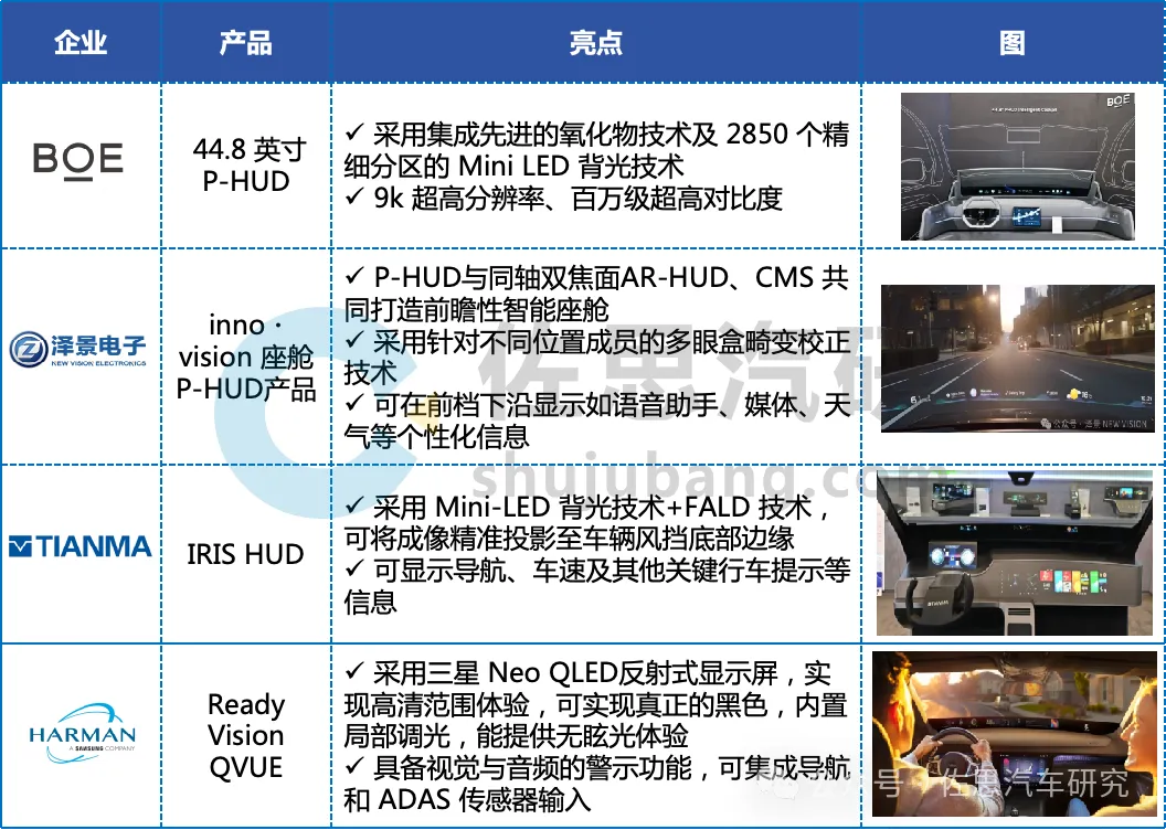 除上述TCL华星、华阳外,供应商端还有多家厂商推出有相似方案,包括大陆集团、京东方、泽景、怡利电子、哈曼、法雷奥、现代摩比斯等。