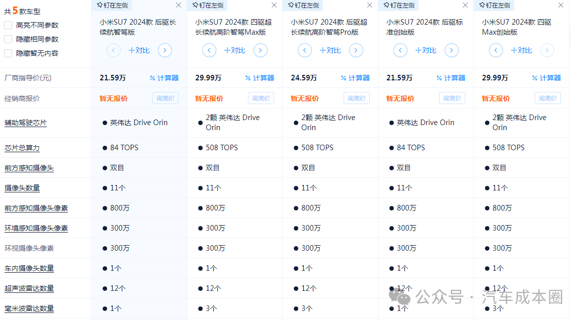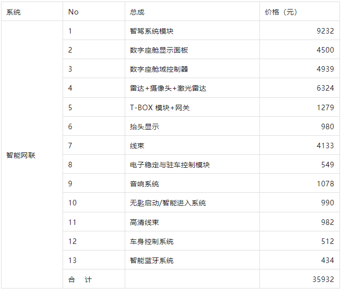 今天继续分享小米SU7的成本信息-电子电器系统。