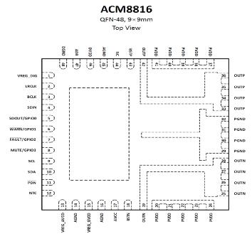ACM8816采用QFN-48(9.0mm× 9.0mm)封装。