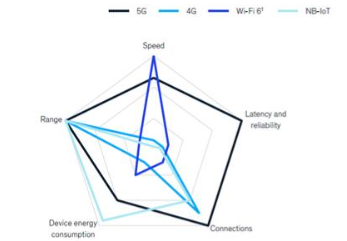 图 1:5G 技术相较其他无线技术拥有更多优势