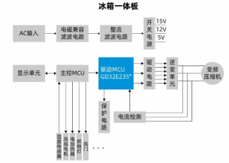 基于GD32E235系列MCU的冰箱一体板应用框图