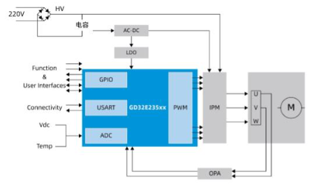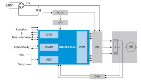 基于GD32E235系列MCU的洗衣机变频驱动应用框图