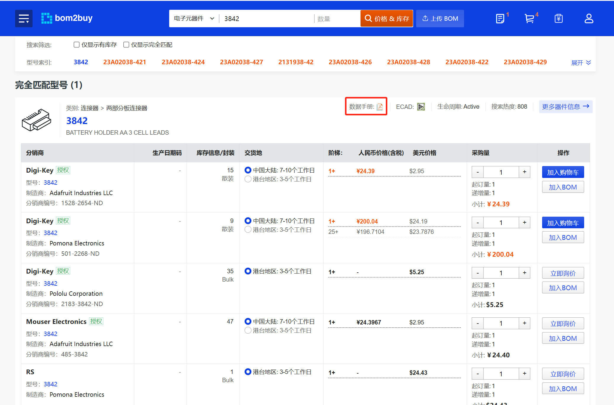 Bom2buy聚合全球超40家分销商的实时库存数据,覆盖6.5亿+元器件信息,支持型号精准搜索与模糊匹配,可快速定位冷门或替代型号,为工程师和采购人打造“快、准、省”的一站式解决方案。
