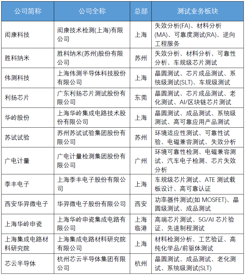 • 华岭股份和季丰电子专注于高端芯片(如AI/车规级)全流程测试服务。