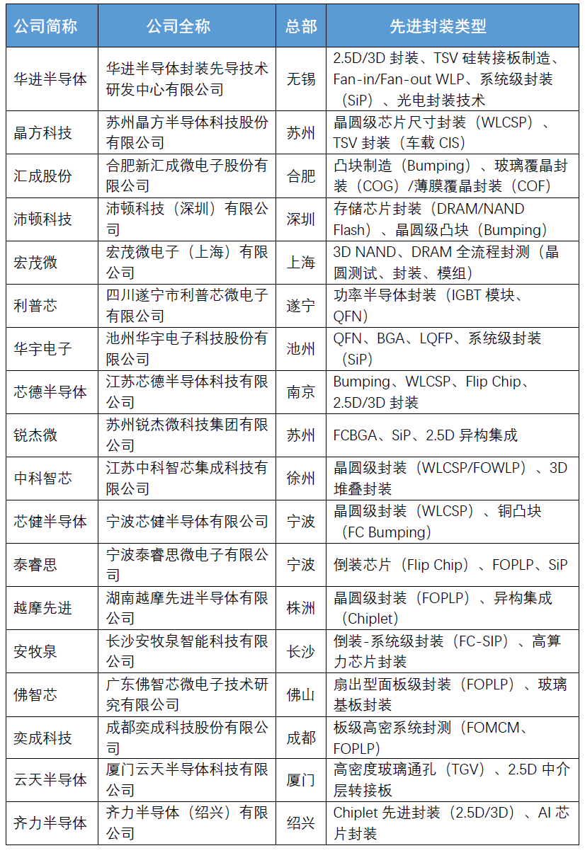 4.16家!先进封装企业获选:长电,华天,芯德,锐杰微,芯健,甬矽,沛顿,泰睿思,云天,越摩先进,齐力半导体,中科智芯,佛智芯安牧泉