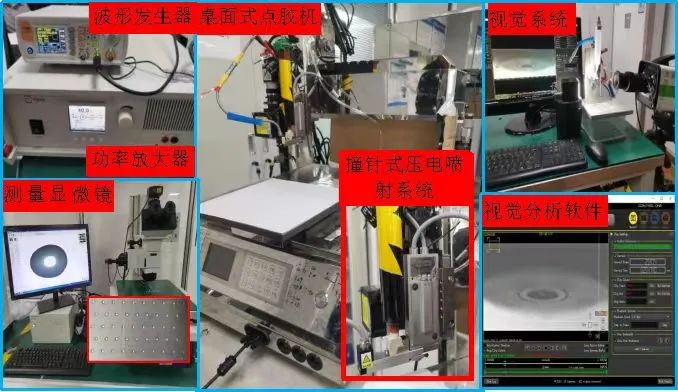 通过功率放大器驱动压电喷射系统,验证撞击式压电喷射阀在不同控制策略下胶点质量、气泡含量等点胶性能。