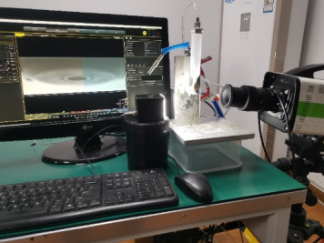 视觉系统包括包括一台高速摄像机、高亮LED光源、视频显示器、撞针式压电喷射系统、微距(特写)镜头和固定支架。为了取得良好的拍摄效果,相机/镜头和高光LED灯轴被定位在略微倾斜的角度。其中,该摄像机是通过特写镜头观察喷嘴处的液滴喷射与回吸过程的清晰图像,并可通过i-SPEED Suite 2.0软件对高速视频进行捕捉和分析。