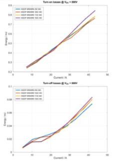 图2:在800V直流链路电压下,HSDIP模块在不同温度下的开通和关断损耗