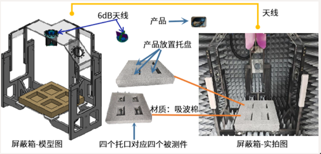 多个被测物放置于屏蔽箱内托盘对应位置,通过天线经空间场或者通过射频线缆建立与测试仪之间的连接,测试仪通过LAN网线连接到控制电脑。启动测试仪和被测设备,在测试软件BTE run中确认连接状态,选择被测物版本和测试模式,勾选所需测试项,运行测试获得测试结果。