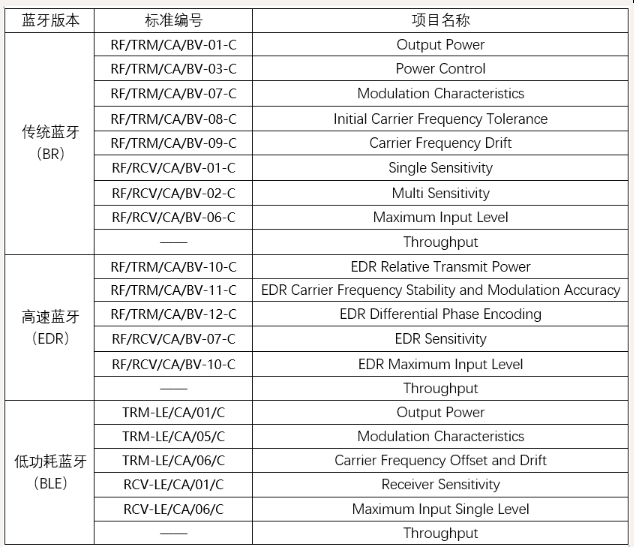 我司北京度纬科技有限公司推出的测试方案支持传统蓝牙(BR)、高速蓝牙(EDR)和低功耗蓝牙(BLE)技术,并符合1.1、?1.2、?2.0、?2.1、?3.0、?4.0、?4.1、?4.2、?5.0、?5.1、5.2版(持续更新)蓝牙协议核心规范。