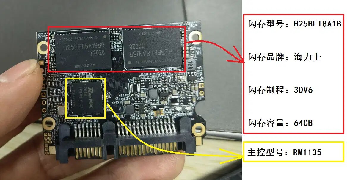 开卡前必须准备一个开卡转接板,方便固态硬盘通过USB连接电脑,我自己用的是祥硕的ASM1153E转接板。再确定一下固态硬盘的主控型号和闪存颗粒制程,我这个是RM1135主控,海力士HYV6制程的闪存,就需要从量产部落网下载RM1135+HYV6的开卡工具,我用的是HynixV6_ZD0R3G5K_SSDMP2.58这个版本。