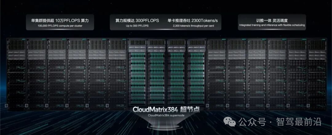 端到端模型对算力的依赖极其强烈,单靠车端算力难以完成大规模深度学习训练和复杂多模态数据处理。华为云推出的CloudMatrix384超节点计算架构,为端到端模型训练提供了行业领先的算力平台。今年4月,该架构在芜湖数据中心实现了规模化部署并率先投入商用,成为国内首个真正落地的大规模超节点集群,为智能驾驶模型的快速迭代和高效训练奠定了坚实基础。