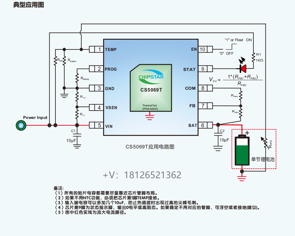 CS5069T是输入耐压36V,BAT管脚具有防反接功能目耐压20V,低电池泄漏电流,最大1A充电电流,单节多类型锂电池线性充电芯片。