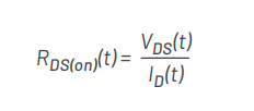动态RDS(on)是指FET在开关过程中导通时,漏极与源极端子之间的平均电阻。漏源电阻RDS(on)是所有FET的重要参数,因为它是传导损耗和效率的一个关键因素。RDS(on)通过漏源电压(VDS)与漏极电流(ID)的比值计算,并可表示为时间的函数: