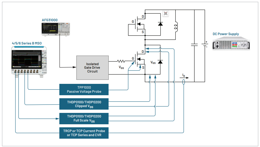 动态导通电阻(RDS(on))是电源转换器设计人员理解电荷俘获效应影响的重要参数。然而,关于其测量技术的知识体系仍相对较新。传统的动态RDS(on)测量技术依赖于二极管钳位电路,使示波器能够以足够的分辨率测量漏源电压,而不会使示波器输入过载。泰克为4、5和6系列MSO示波器推出的宽禁带双脉冲测试(WBG-DPT)测量软件引入了一种新的软件钳位方法,采用独特的双探头技术,无需使用钳位电路。