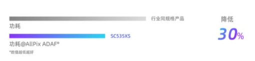 作为全国产旗舰手机辅摄应用CMOS图像传感器,SC535XS基于思特威先进的SmartClarity?-SL Pro技术平台打造,采用28+nm先进工艺制程,在兼顾高性能的同时实现了功耗的显著优化。在AllPix ADAF?模式下,SC535XS功耗较行业同规格竞品降低约30%。