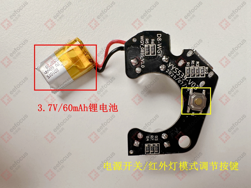 一个机械微动开关实现电源以及红外灯模式调节的功能。说到这个微动开关,那就不得不提到最近很火的小米汽车门把手上也是采用这种微动开关实现解锁开门,大家觉得靠谱吗?