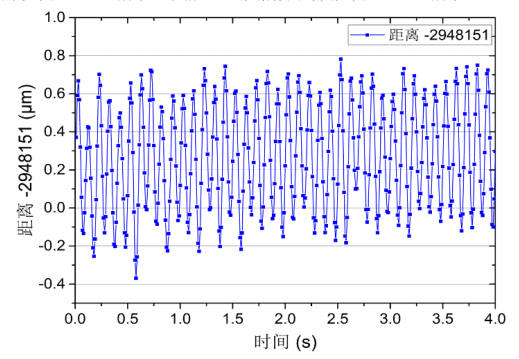 同时从图3(a)中还可以看出,测量结果波形的上沿(由正弦的最大值组成)和下沿(由正弦的最小值组成)都存在一定程度的波动,而且波动范围大约为200nm。这跟目标静止时的测量结果有很好的一致性。而待测镜、激光器安装件等器件的机械震动,以及空气扰动等,都会使得待测距离出现微小的随机变化。