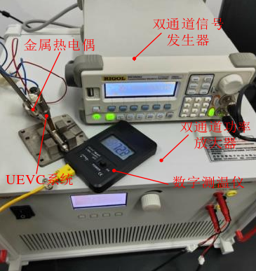 功放发挥的效能:为整个实验中的核心部分,在此实验中发挥的作用是提供114V的电压信号,用来压电换能器产生超声振动。