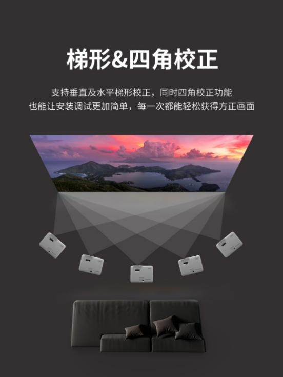 LSD400W在安装灵活性方面表现出色,支持360°全方位投影与90°肖像模式,结合高效散热系统,可在多种角度下稳定运行,满足创意展示、垂直信息墙、互动教学等多样化应用需求。产品具备垂直与水平梯形校正功能,配合四角校正技术,用户可轻松调整画面形状,无需复杂调试即可获得方正画面,显著提升部署效率。无论是吊装、侧投还是桌面摆放,LSD400W都能快速适配不同空间布局。