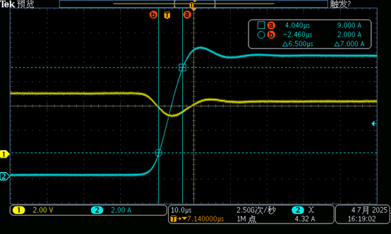 0.1A-10A 电流爬升 ?实际斜率 1.07A/us