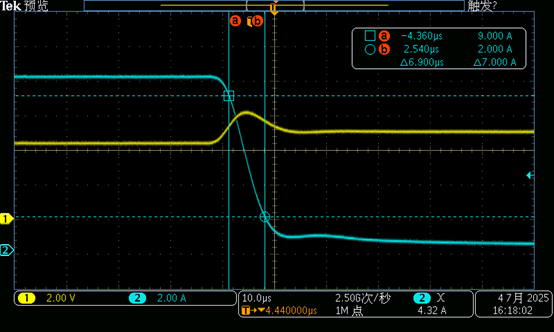 10A-0.1A 电流下降 ?实际斜率 1.01A/us
