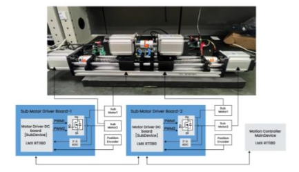 内置EtherCAT subdevice controller,相比于常规的外置控制器,拥有更低的成本,更高的PDI传输速度。恩智浦基于片内EtherCAT控制器设计了基于单颗i.MX RT1180芯片的EtherCAT+伺服电机控制方案,并通过一台滑台丝杆的齿轮对接,对该方案的性能进行了展示。