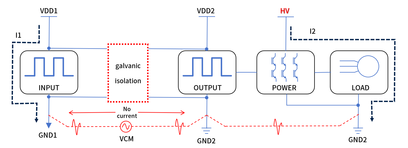 如上图所示,电气隔离不仅能防止输入回路和输出回路间的信号传输因高频高压瞬变(dv/dt)而产生信号失真、信号丢失等不良现象,还能防止强电电路的电流流入弱电电路,从而保护相应设备和操作人员的安全,让各类高压电气系统具有更高的可靠性。