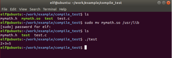 下面将我们自己建立的库移动到/usr/lib目录下试试,然后发现代码运行成功。