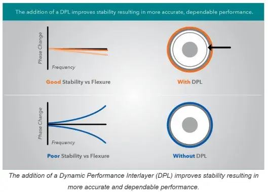 DPL 的优势不仅限于改进的机械性能。改进的物理特性也改善了其电气性能。DPL提供了更好的相位稳定性。相位是指波在其周期内特定时间点的位置,在考虑射频信号如何沿电缆传播时很重要。因此,相位偏移是波位置的变化,通常由外力引起,例如电缆的弯曲或温度的变化。更大的相位稳定性导致更一致的射频信号,即使电缆本身在弯曲时也是如此。