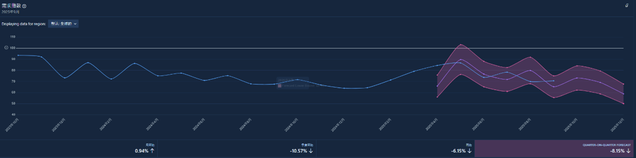 - 2025年8月模拟芯片需求显著下滑,预示未来销售额将进一步走低,四方维商品动态商情需求指数预计在11月跌至三年最低点。