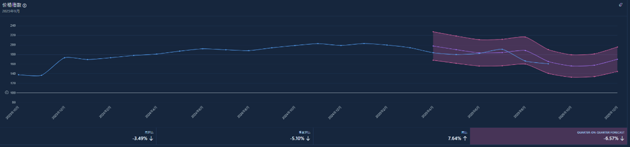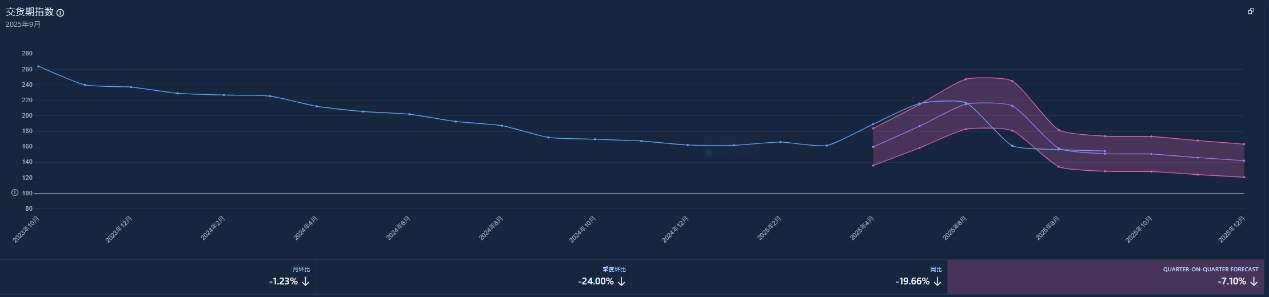 - 四方维商品动态商情交货时间指数在2025年8月环比下降2.5%至155.8;预计11月该指数将降至143.5,再创三年新低。