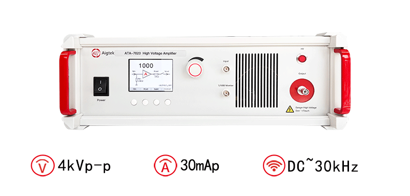铁电材料发生极化反转需要克服极高的能量壁垒。以典型的锆钛酸铅陶瓷为例,其矫顽场强约为2kV/mm,对于厚度0.5mm的样品就需要1kV的驱动电压。而新型高温铁电材料的矫顽场更高,甚至可能超过材料本身的击穿场强。高压放大器可稳定输出±10kV乃至20kV峰峰值电压(如ATA-7000系列),提供足以迫使电偶极子集体转向的电场强度,从而有效突破铁电材料的极化阈值。
