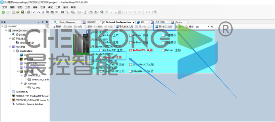 在网络组态中勾选EtherCAT主站,添加EtherCAT主站机架