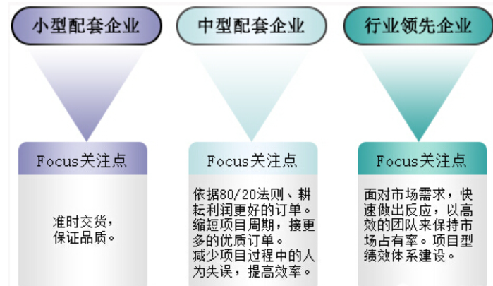 众多为上游龙头企业做配套的中小型制造业,以订单为导向,侧重于项目交付周期的控制,避免人力损耗,强调制造过程管理、减少制造成本、保证交付质量。