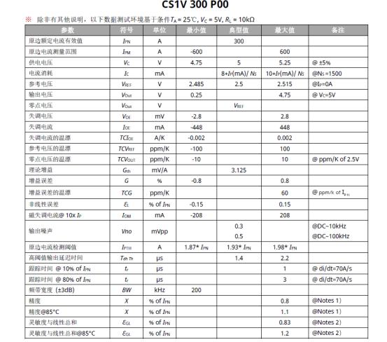 额定与测量范围:例如 CS1V-200P00 额定 200 A,测量范围 ±450 A。