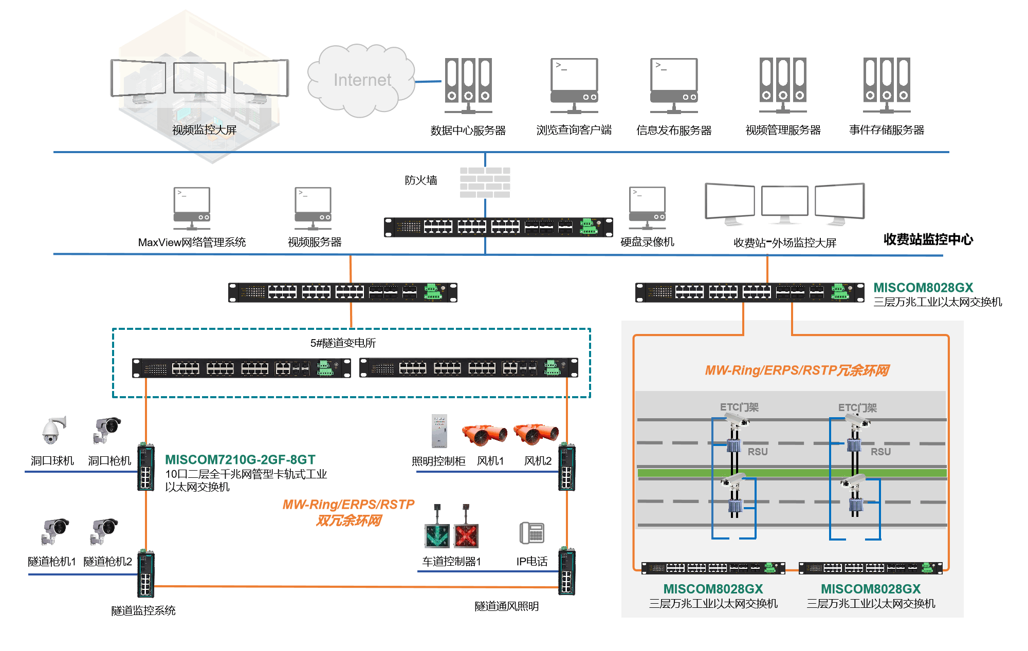 监控系统:千兆乃至万兆网络端口支撑高清视频实时回传,卡口、隧道CCTV画面不能卡顿、不能延迟——这是安全管控的生命线。