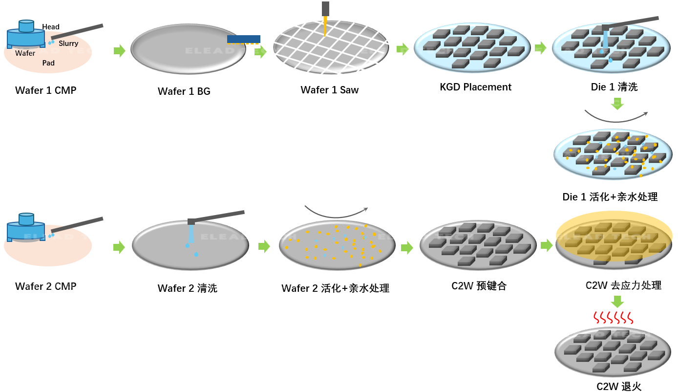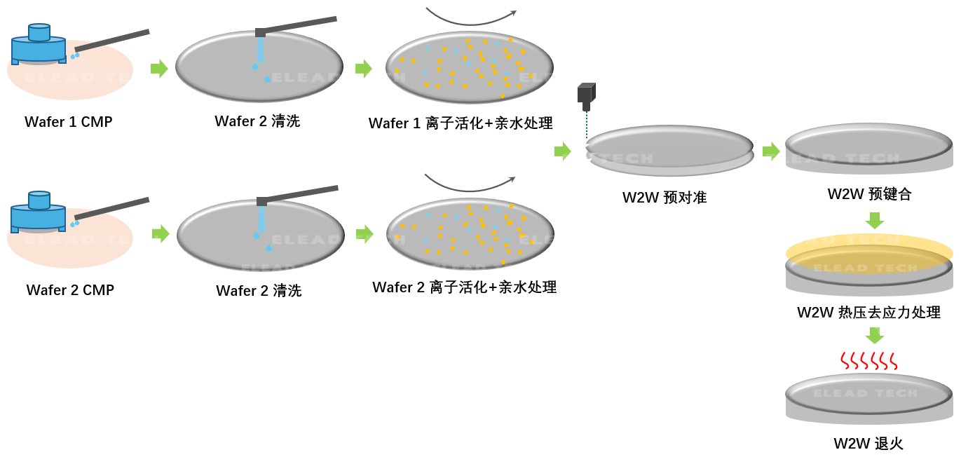 W2W(Wafer to Wafer)键合制程前后主要为: