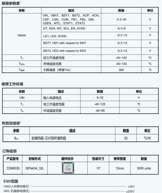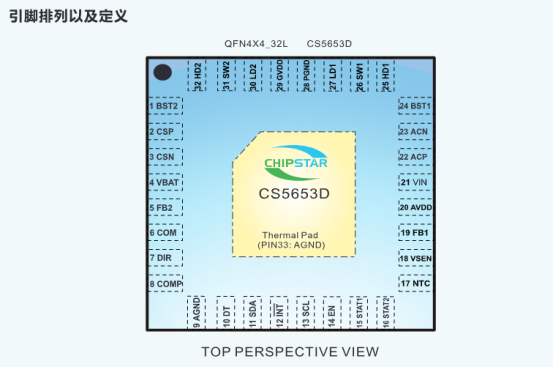 在太阳能充电器、无绳电动工具、移动电源等依赖多节锂电池供电的设备设计中,开发者常面临 “太阳能能量利用率低、充放电双向适配复杂、多类型电池兼容难” 的问题?—— CS5653D 双向升降压充放电控制器,恰好能为这类需求提供解决方案。作为一款集成太阳能 MPPT 功能的充电管理 IC,它不仅支持 3.8V~32V 宽输入输出电压,可适配 1~6 节串联锂离子电池与 1~8 节串联磷酸铁锂电池,还能通过 DIR 管脚灵活切换充放电模式,反向放电时可稳定输出 5V 3A 电压,满足 USB 设备供电需求。