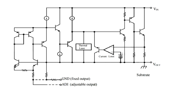 其中,基准电压Vref=1.25V,调整端电流Iadj约为50μA,通常可忽略不计。为获得最佳性能,建议R1阻值选择在200Ω至350Ω之间,此时流过R1的电流约为4-6mA,既能保证空载时的稳定性,又不会造成过多的功率损耗。