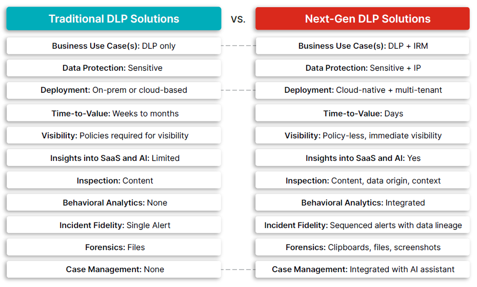 当前,大多数企业仍依赖传统的数据防泄露(DLP)解决方案。这类工具设计初衷是防范受监管数据(如社会安全号码、信用卡信息、医疗记录)的外泄,主要针对边界清晰、数据集中存储的早期网络环境。