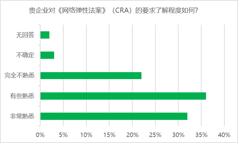 随着欧盟《网络弹性法案》(CRA)合规期限临近,各企业正面临紧迫的合规挑战。然而,《2025年物联网和OT网络安全报告》调查揭示:仅 32%?的受访对象完全掌握 CRA 具体要求,已全面启动合规措施的企业比例更低至?14%。
