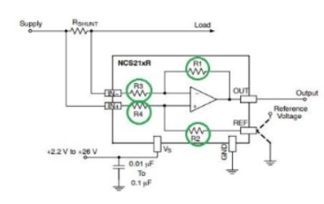 一大关键难题是上桥配置中的电流测量,其中的分流电阻并非以地为参考点。这就要求放大器需具备处理大共模输入电压的能力:部分型号的共模电压上限可达 40V,而像 NCS7031 或 NCV7031(汽车级)和 NCS7041 或 NCV7041(汽车级)等型号,共模电压上限甚至可达到 80V。这种能力对上桥和下桥电流检测意义重大:既为设计提供灵活性,又能在上桥应用中实现负载短路检测。