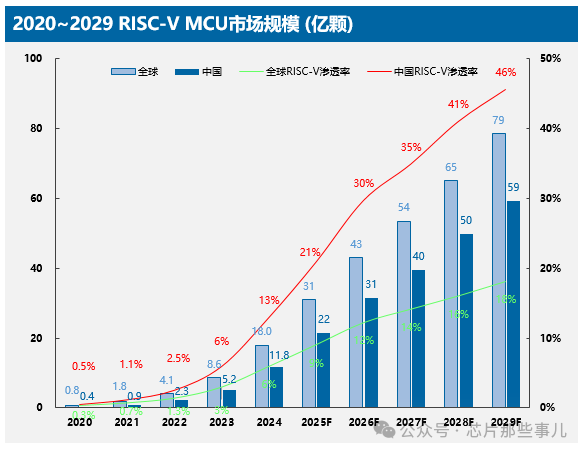 2.RISC-V快速渗透:五年内中国渗透率过半,全球渗透率18%