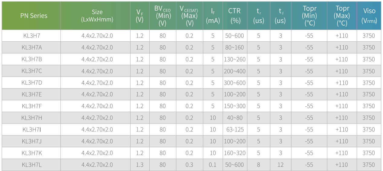 晶台光耦的技术优势体现在多维度参数优化。以KL3H7为例,其采用SSOP4封装,隔离电压达3750Vrms,电流传输比(CTR)范围灵活,在5mA驱动电流下CTR为50%~600%,10mA时仍可达40%~320%,可适配不同功率等级的充电器设计。这种宽动态范围使其在车载充电器或高功率充电桩中表现突出,能将高压侧的电压采样信号安全传递至低压控制电路。此外,KL101X系列通过4引脚LSOP超小型化设计,厚度仅2.2mm,完美适配氮化镓(GaN)快充的紧凑布局需求,同时满足RoHS、REACH及无卤素标准,通过CQC、UL、VDE等安规认证。