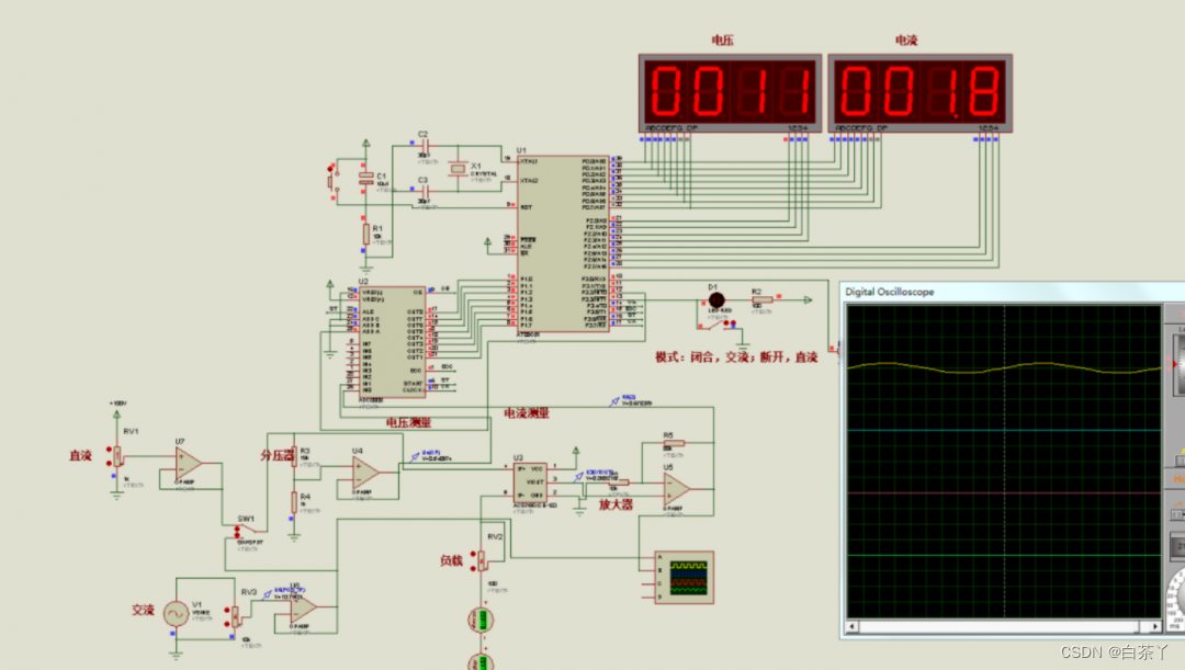 1、系统有2个工作模式:交流模式和直流模式,通过开关切换测量模式;