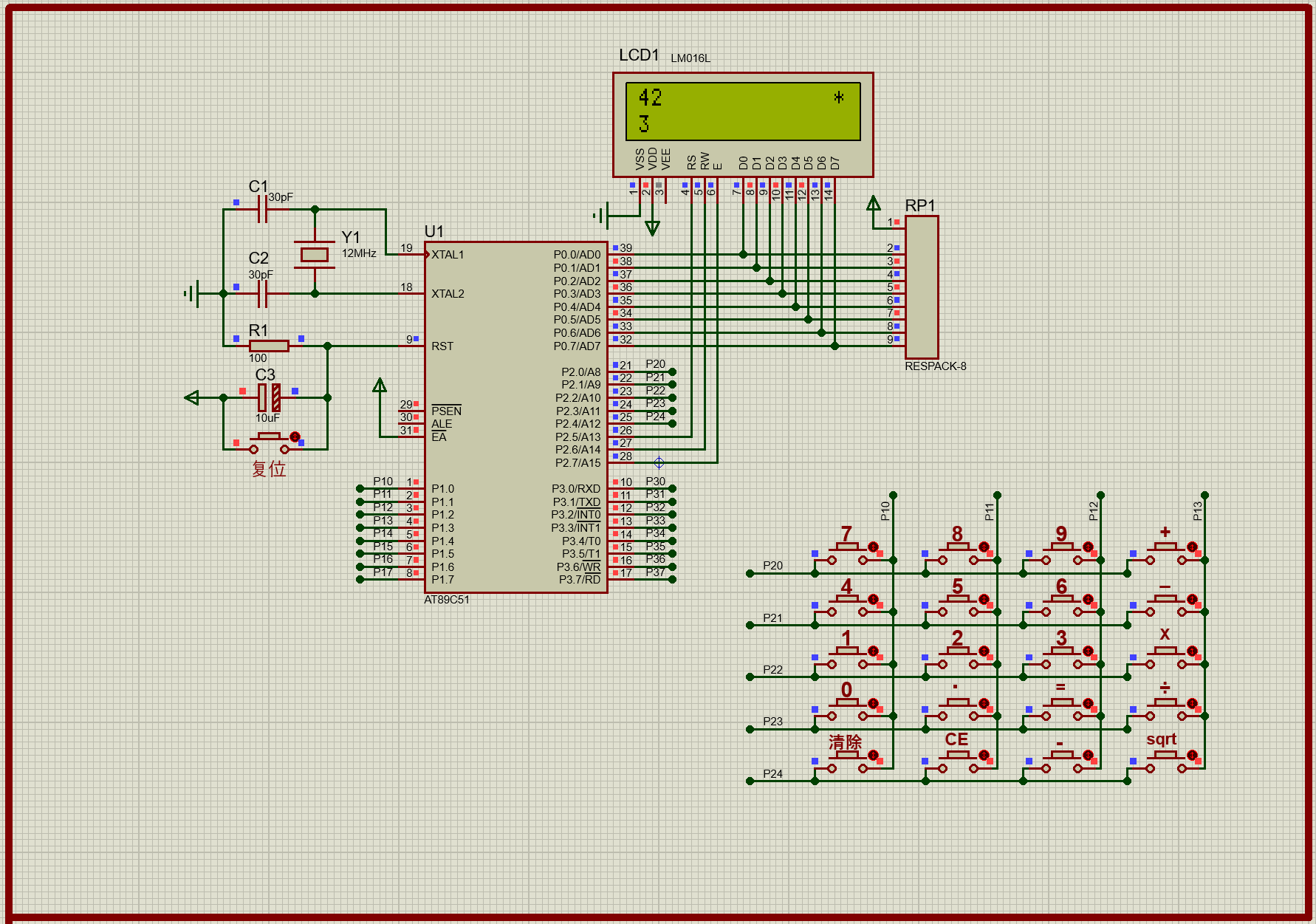 b.通过4×4矩阵键盘进行加、减、乘、除、开方数字运算。