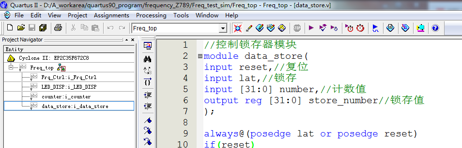 名称:直接测频频率计设计Verilog代码Quartus仿真