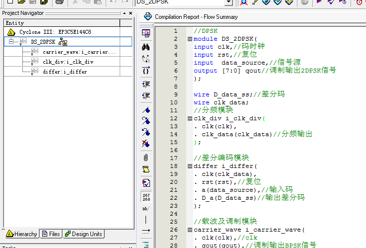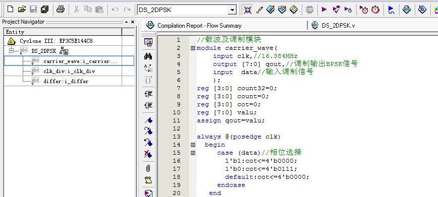 名称:DPSK和QPSK调制设计Verilog代码Quartus仿真